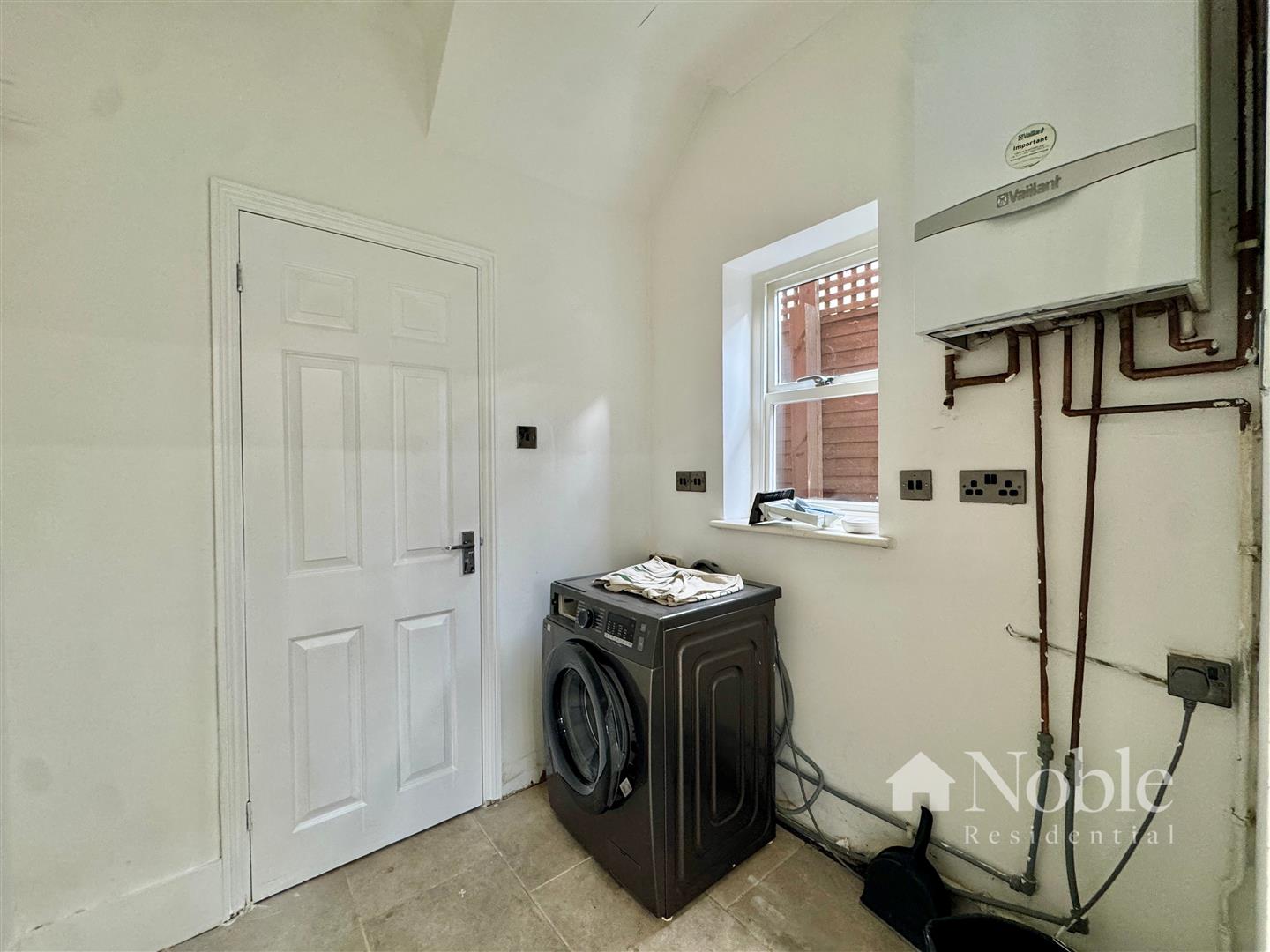 Double glazed window to side, tiled flooring, boiler, washing machine.
