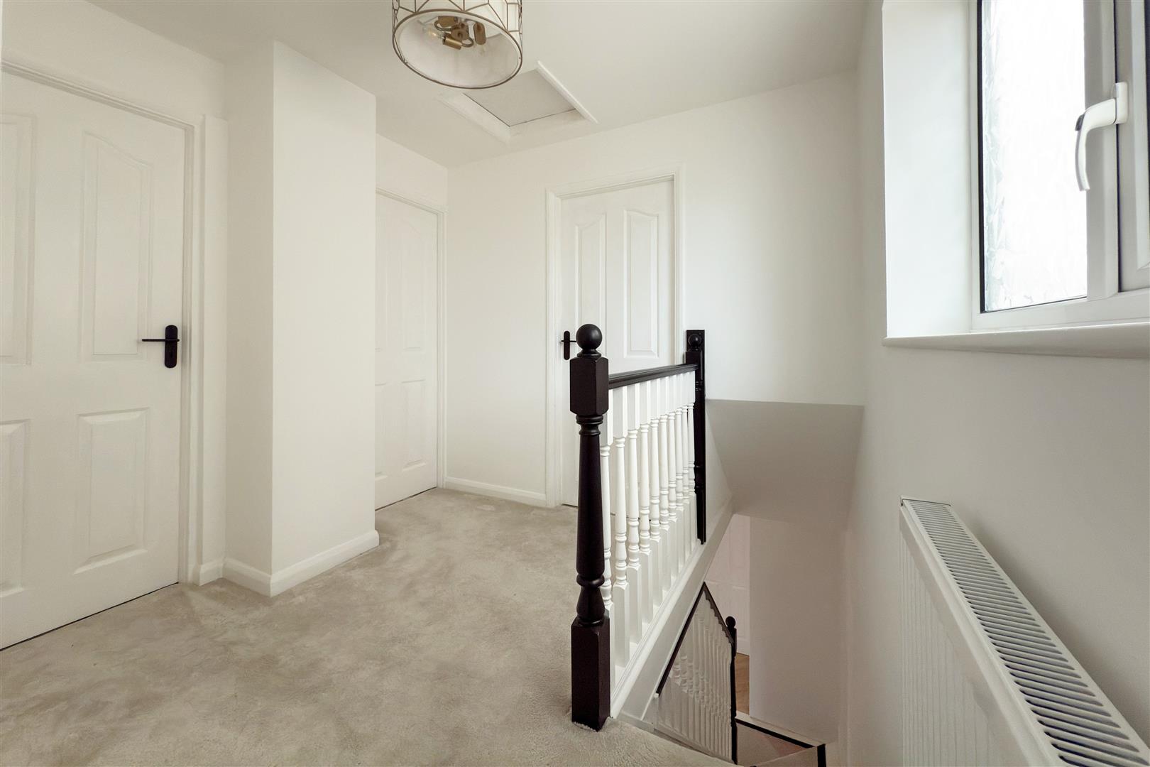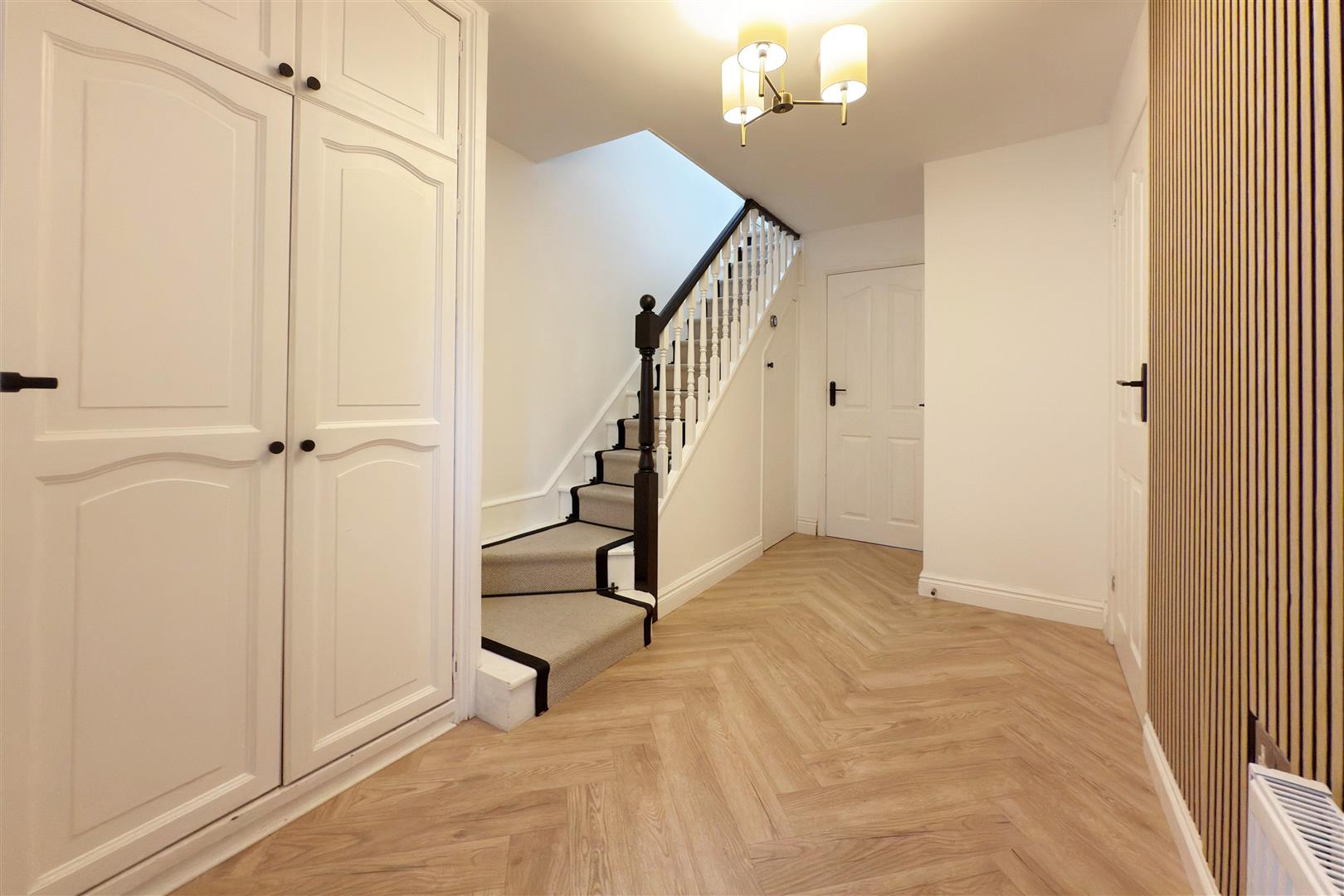 UPVC double glazed entrance door, window. Smooth ceiling, part wood panelling to walls, stairs to first floor, three storage cupboards, radiator with thermostatic valve, nest smart heating controls, laminate flooring.