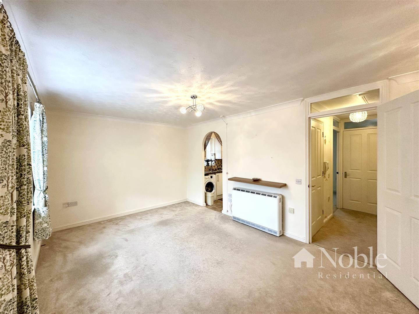Double glazed window to front, emergency pull cord, electric storage heater, coved ceiling, carpet, arch to kitchen.