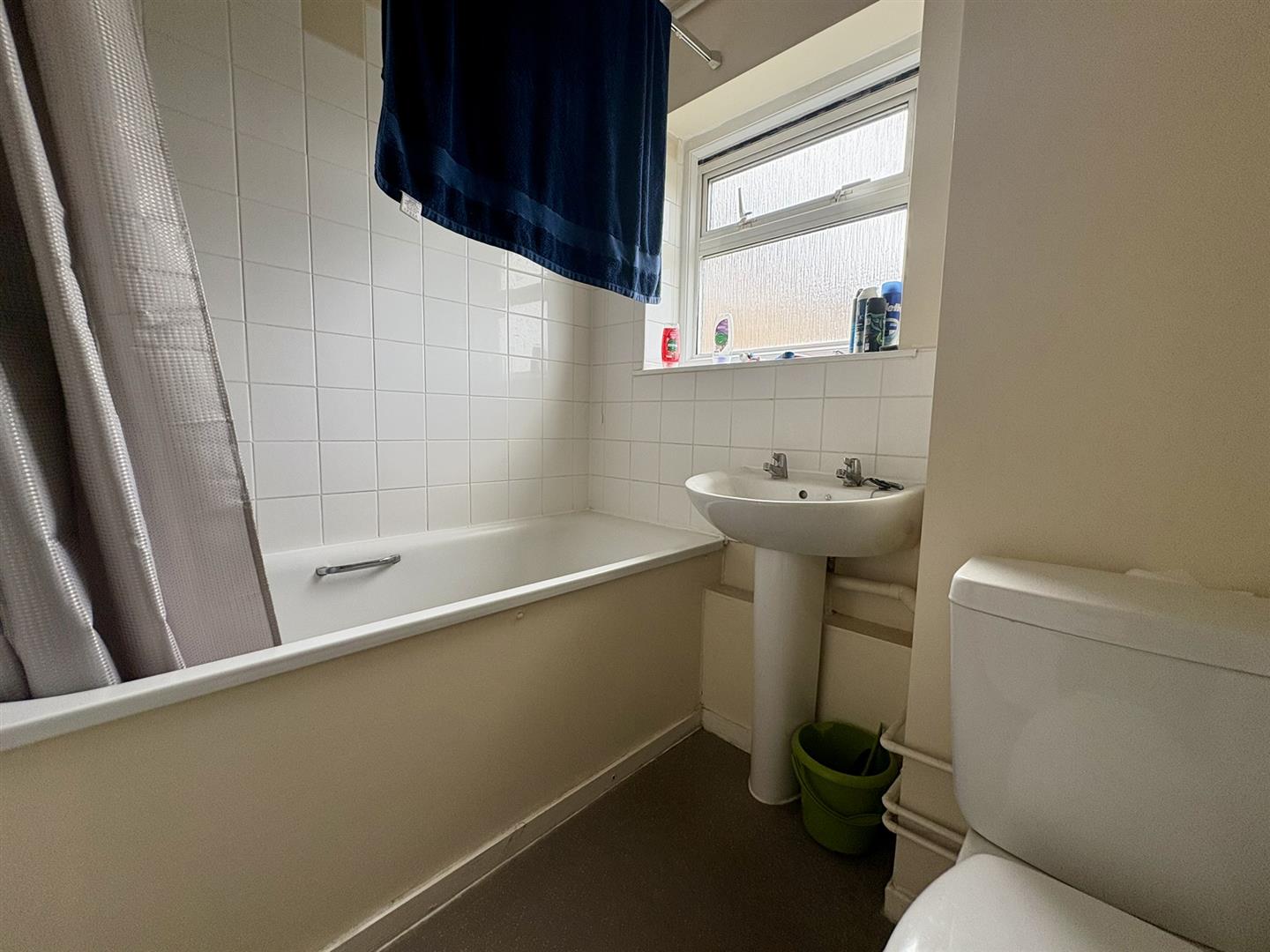 Double glazed window to rear, panelled bath, low level WC, wash hand basin, vinyl flooring, radiator.