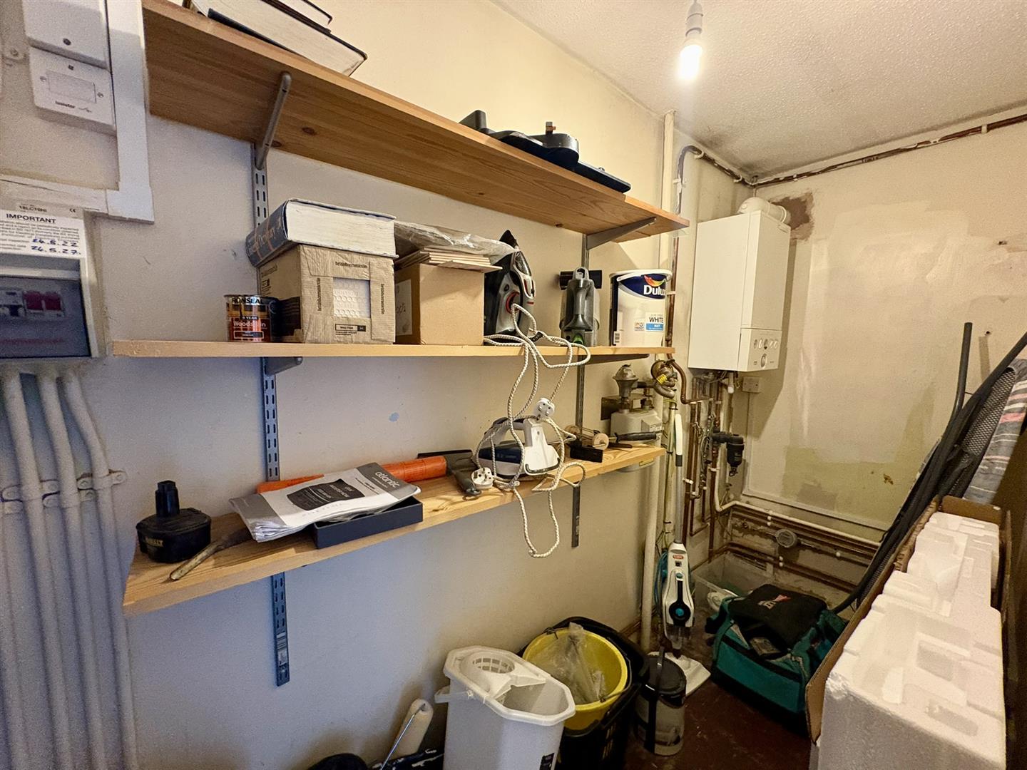 Entrance door, laminate flooring, radiator, two storage cupboards.
