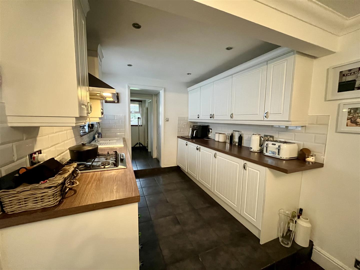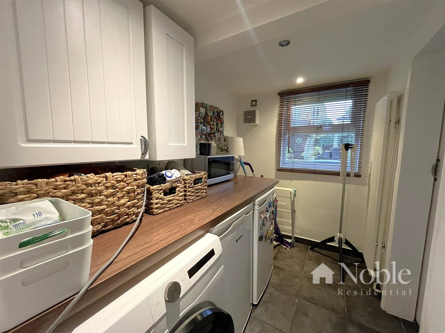 Double glazed window to rear, plumbing for washing machine and tumble dryer, wall units, storage cupboard, tiled flooring.