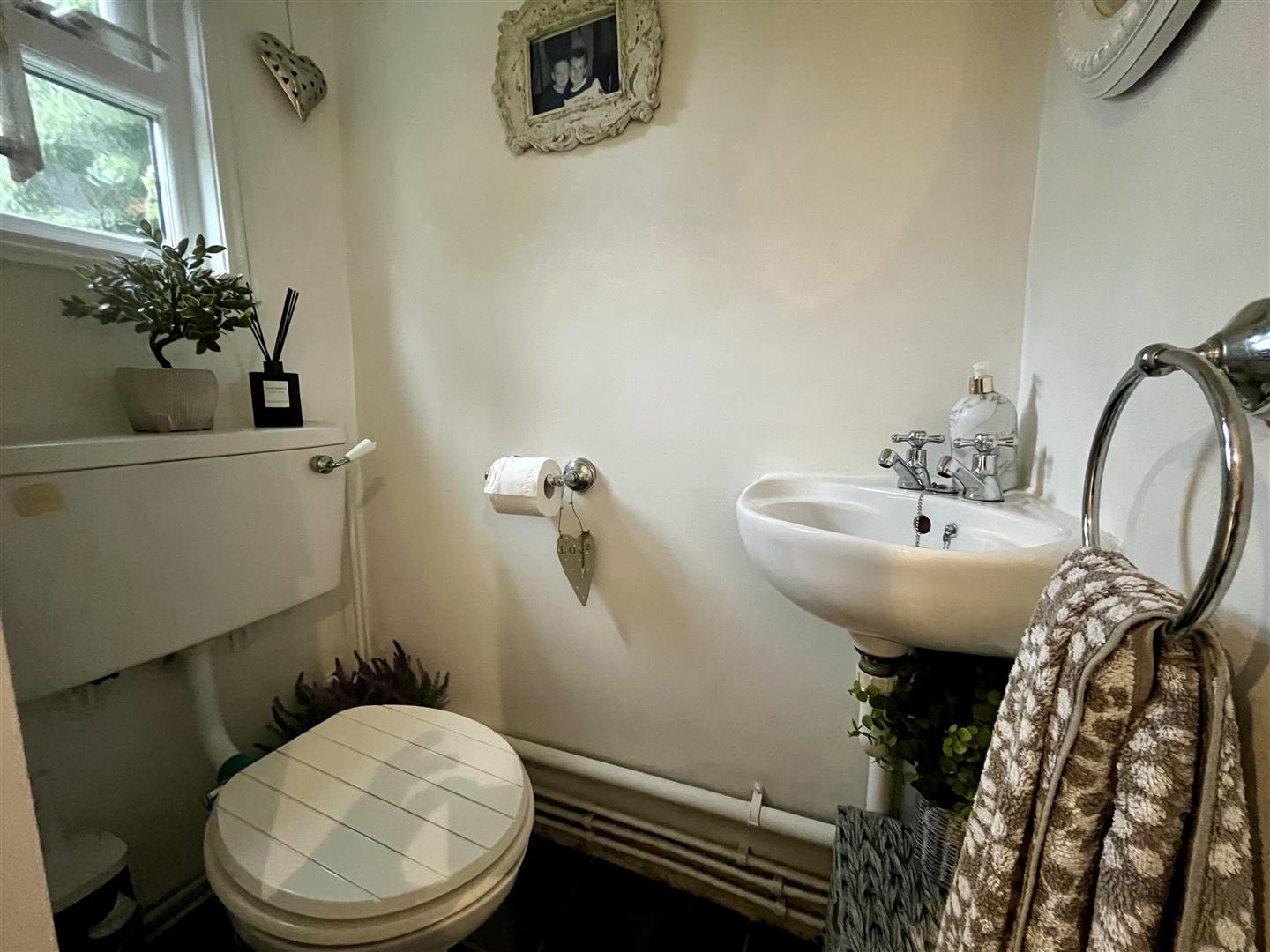 Double glazed window to rear, spotlights, wash hand basin, low level WC, tiled flooring.