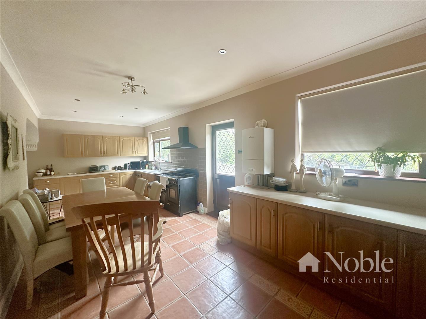 Two double glazed windows to rear, part double glazed door to rear, wall and base units, single drainer sink, gas cooker point, dishwasher, boiler, tiled walls, radiator, tiled flooring.