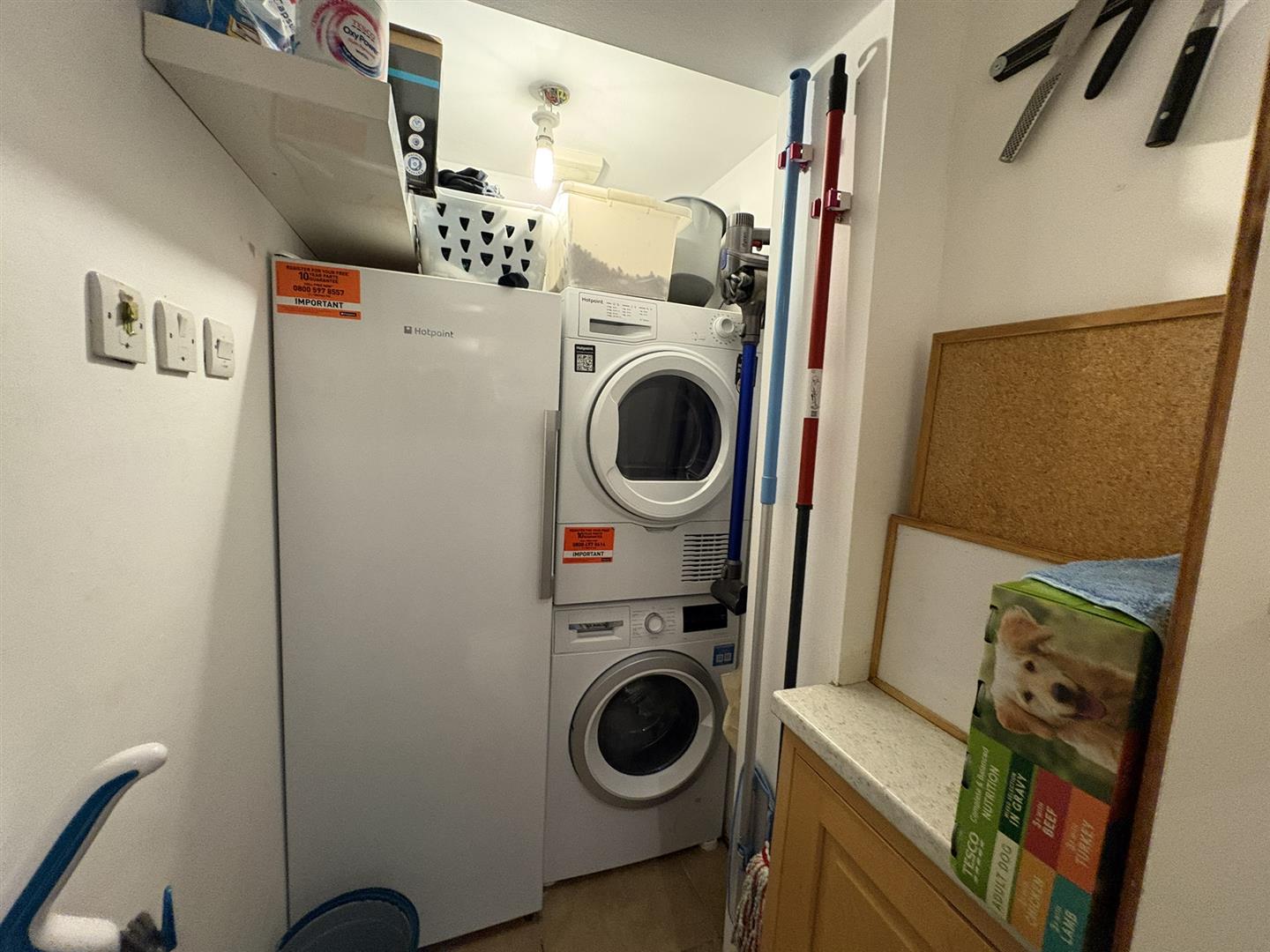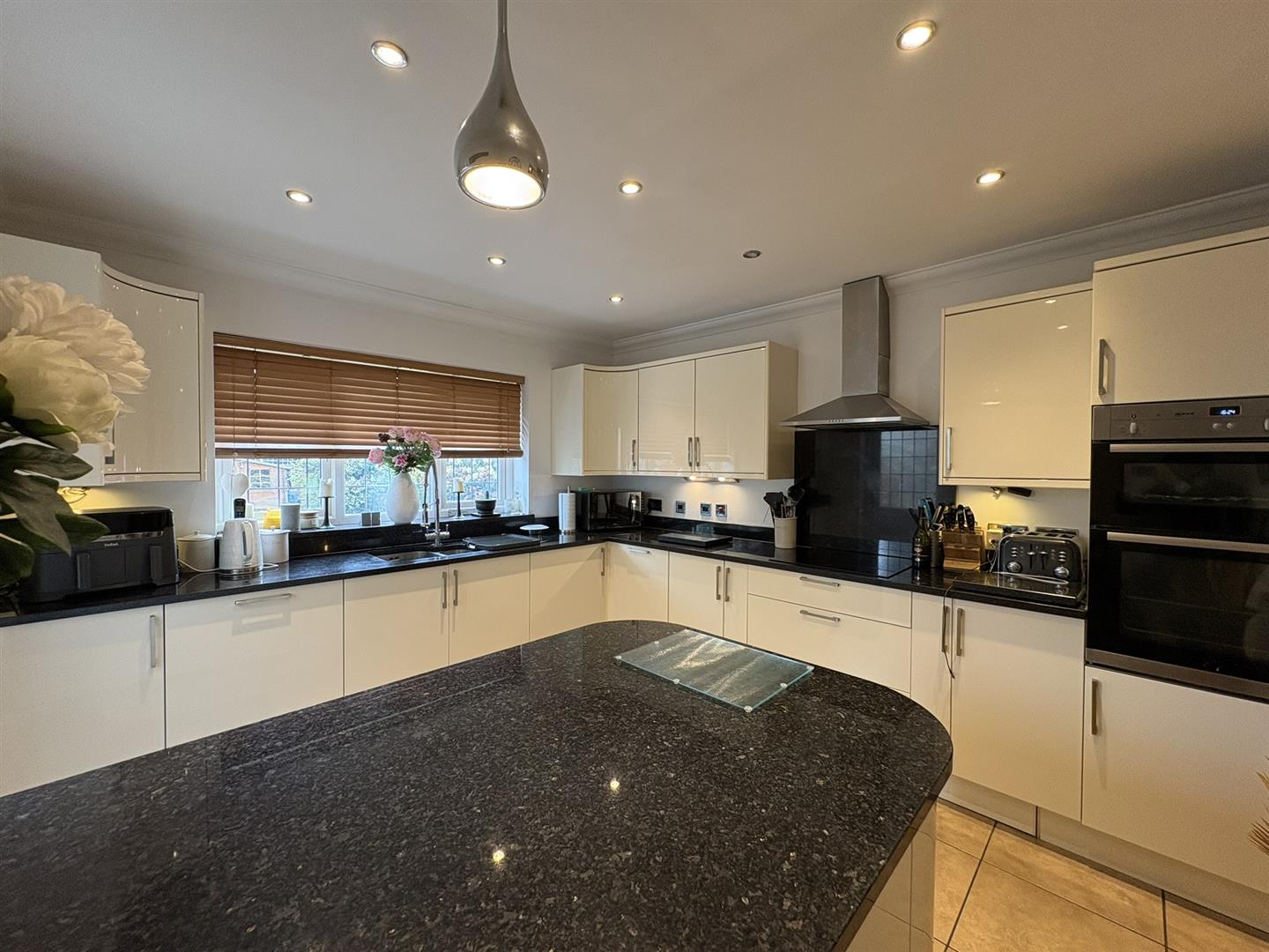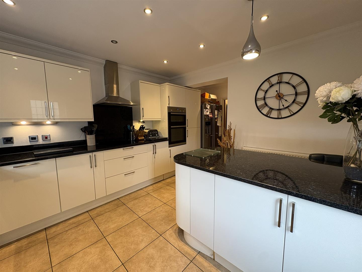 Spotlights, double glazed window to rear, door to rear, wall and base units, granite worktops , double oven, induction hob, dishwasher, breakfast bar with granite worktop, tiled flooring, double doors into area for washing machine, tumble dryer and fridge freezer.