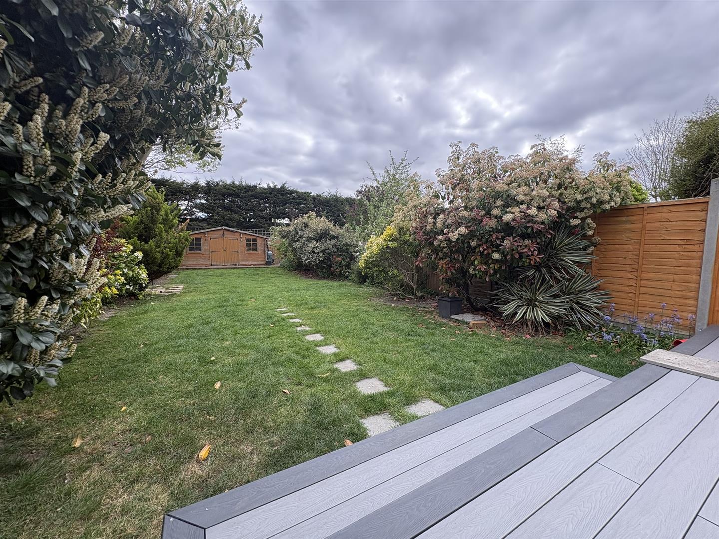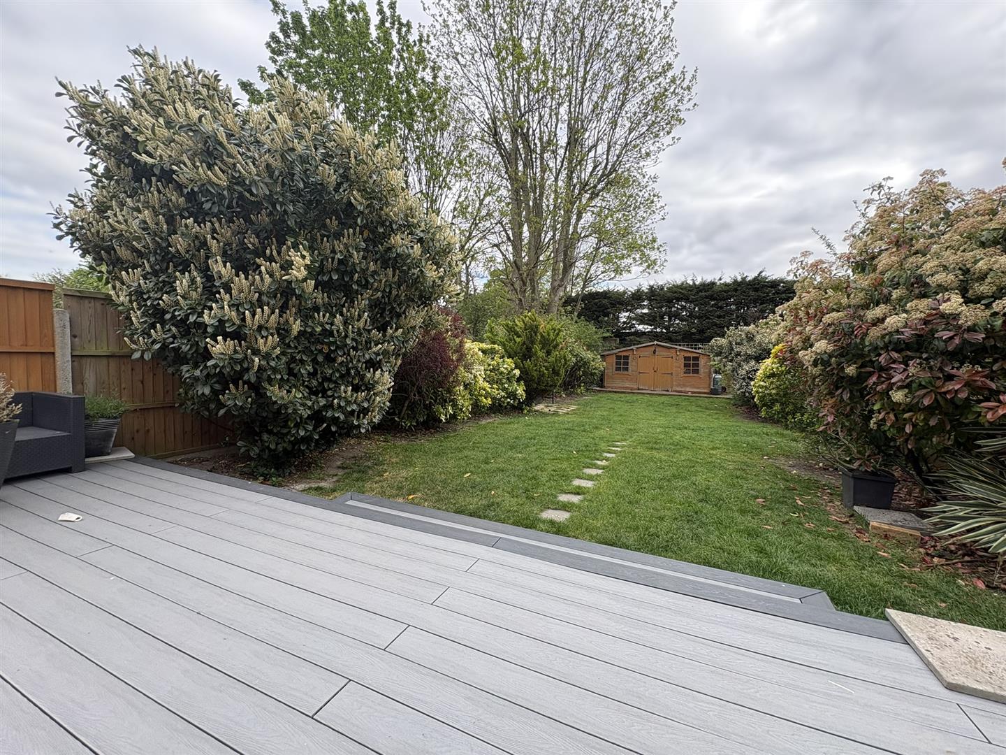 Part decking and part laid to lawn, outbuilding with power, extra storage cupboard.
