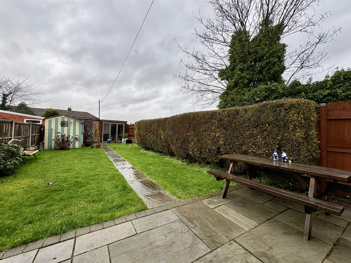 South facing, side pedestrian access, part paved and part laid to lawn, shed, outbuilding.