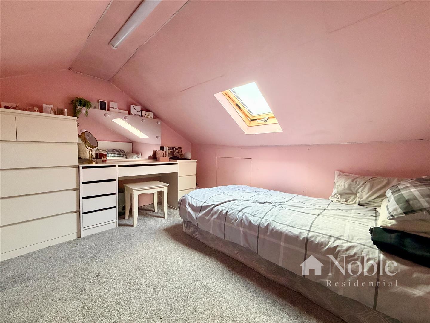 Double glazed window to front, radiator, coved ceiling, carpet, access to loft area via a fold down ladder.