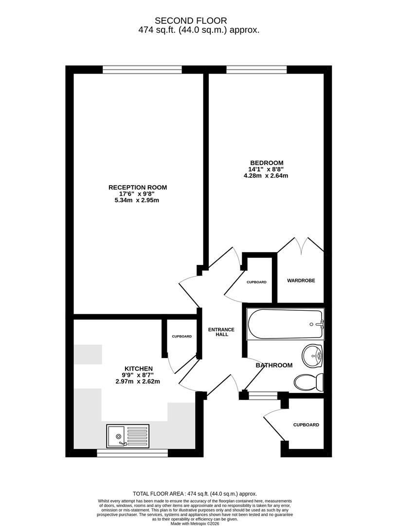 A second floor purpose built one bedroom flat, the accommodation includes, entrance hall, reception room, kitchen, double bedroom with built in wardrobe, bathroom.