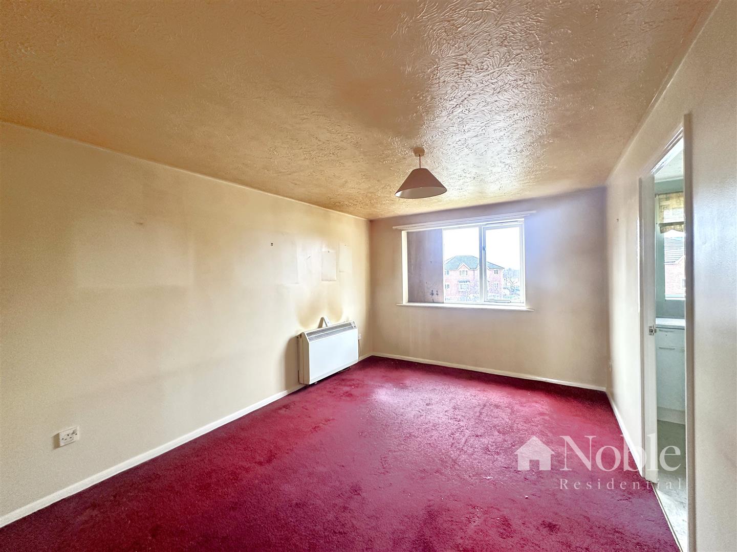 Window to rear, electric storage heater, carpet.